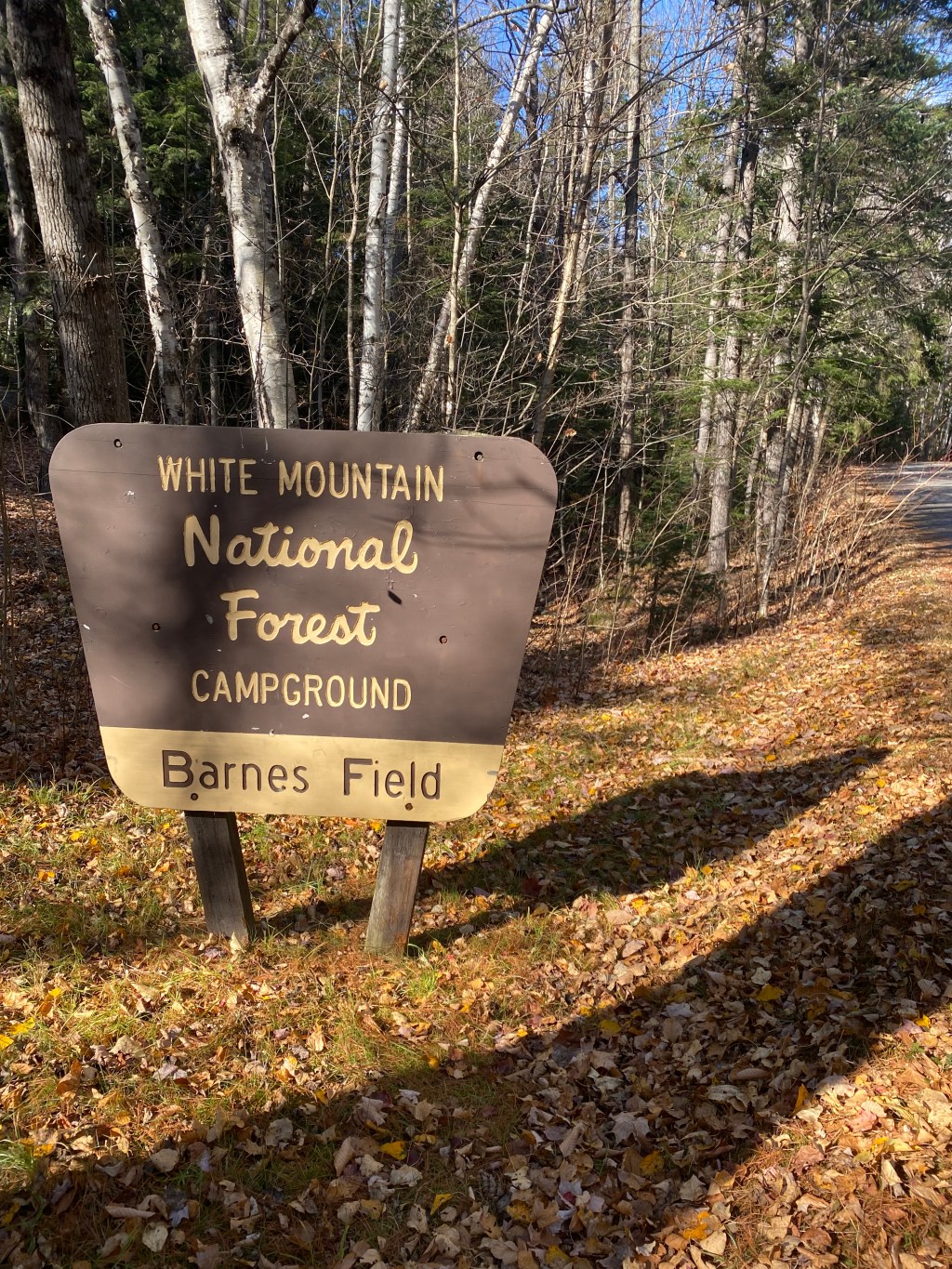 We have not settled on a favorite spot to camp just yet. We have spent some time during late fall 2024 at Barnes Field located within the White Mountain National Forest. We enjoyed the peaceful setting and we were still happy to see other people camping there as well. In the off season this group camping area is first come, first served. We found a spot, put a nightly fee in the iron ranger, and set up camp.