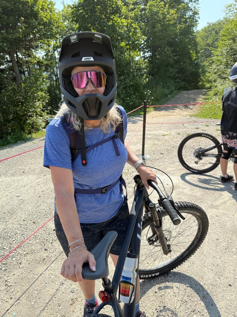 I was riding slowly enough downhill at Killington Bike Park to confirm my husband and I were among the most senior people on the trails. I promised myself I’d take it easy returning to mountain biking after a years-long hiatus and a pretty decent loss in fitness. The type of riding that required a full face helmet was not what I had in mind.